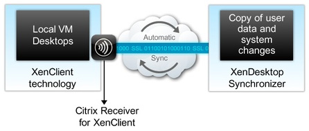 XenClient - XenClient enables your organization to use virtual desktops anywhere, anytime. You can use it to run multiple virtual machines locally, even when disconnected from the network. You can enable local virtual machine desktops for laptop users by configuring XenClient and Citrix Receiver for XenClient. Alternatively, you can configure the Synchronizer for XenClient virtual appliance, which lets you configure hosted, predefined virtual machines. This configuration enables you to centrally manage XenClient devices.